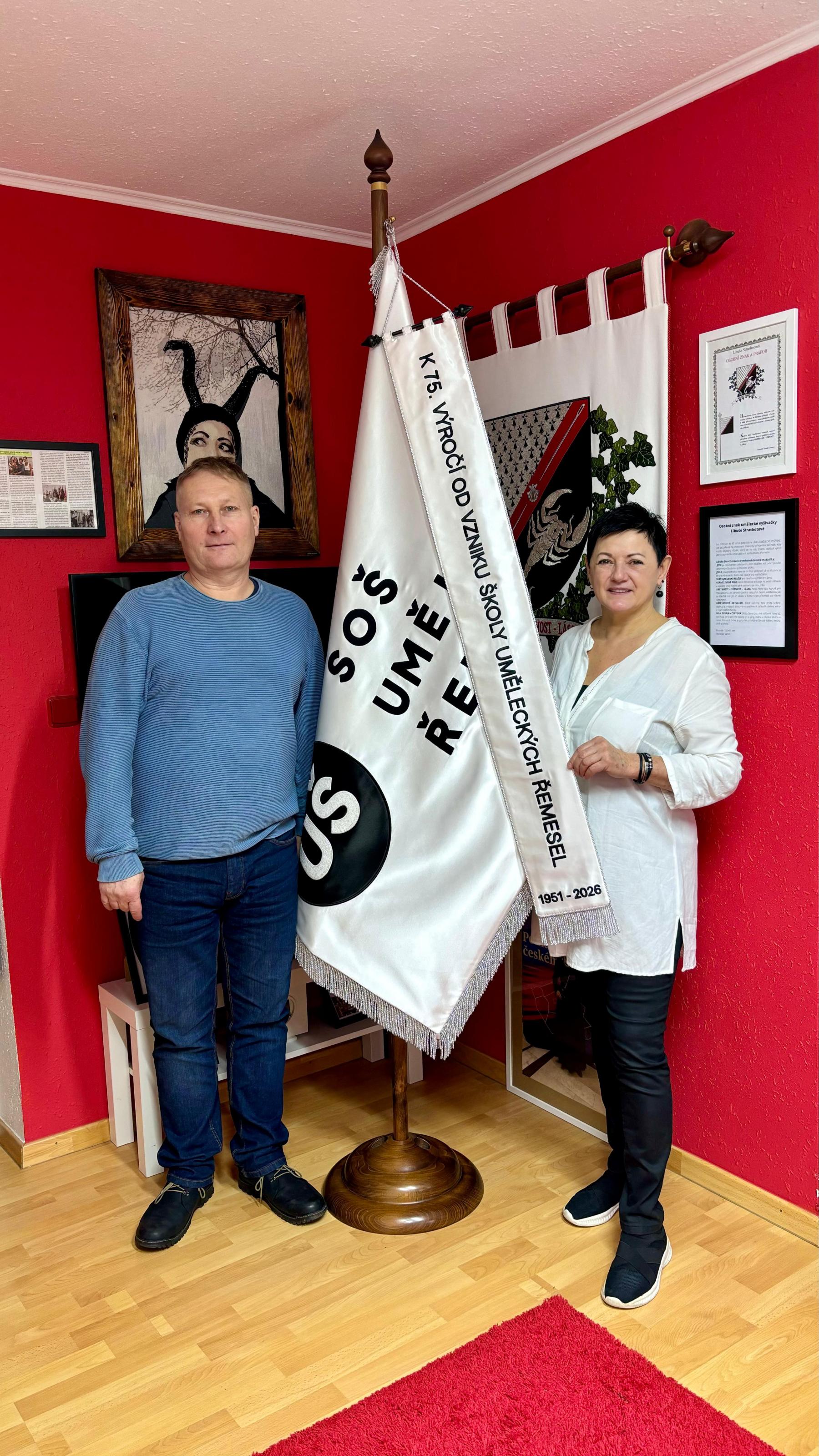 „Jsem rád, že jsme díky vám a vaší dílně mohli k 90. výročí budovy školy (a 75. výročí založení Šolského ústavu umělecké výroby) v Podkovářské před všemi současnými učiteli a mistry v uměleckořemeslných oborech slavnostně odhalit nový prapor, který bude čestně umístěn v prezentační místnosti, kam přicházejí zájemci o studium a návštěvy. Vaše skvělá práce a náš nový vizuál se tak těší velkému zájmu a pochvale poctivé, tradiční ruční práci. Odborníci prapor i celou práci obdivují a chválí.“